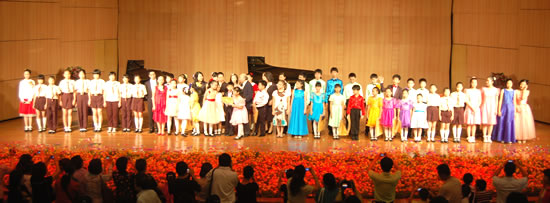 音乐会由来自中、日、韩、美和印尼五国优秀少儿钢琴手联袂演出,形式活泼多样,从独奏到合奏到联弹,孩子们灵巧的手指在琴键上不停的舞动,充满激情的演奏打动了场内所有观众,掌声阵阵回响。琴声时而悠扬浪漫,时而激昂澎湃,有家户喻晓的中外名曲《茉莉花》、《雪绒花》,也有钢琴大师作品《匈牙利狂想曲》等,还有让国外孩子觉得新鲜的中国特色作品《放牛娃儿盼红军》、《春天的故事》和《步步高》等,多变的形式和风格让观众感叹和陶醉。最后,音乐会在各国孩子们《友谊地久天长》的大合奏中落下帷幕。