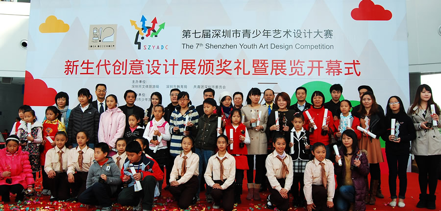 12月25日上午,“第七届深圳市青少年艺术设计大赛”在市少年宫举行隆重的颁奖礼暨展览开幕仪式。市委宣传部、市文体旅游局、市教育局、团市委相关领导出席了仪式并为获奖的选手颁发了奖杯和证书,并为“大赛新生代创意设计展”揭幕。