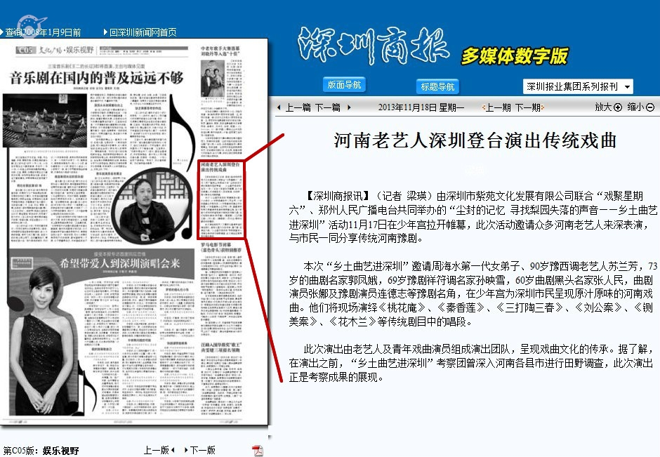 〖深圳商报〗河南老艺人深圳登台演出传统戏曲