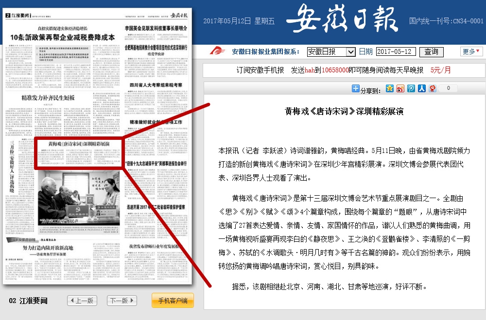 〖安徽日报〗黄梅戏《唐诗宋词》深圳精彩展演