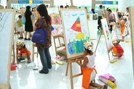 现场气氛热烈,孩子们在水晶大厅摆起上百个画架,手持调色版,俨然艺术大师的风范,著名儿童画家杨梅红,少儿美术教育家吴小燕,著名版画家靳保平,香港动漫协会会长郭峰等知名画家同深圳的小画家同时作画,用独特的艺术角度展现深圳的美丽。