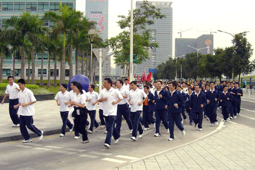 长跑日,“杰青”来领跑 2005年11月01日 今天是第26个深圳市民长跑日,少年宫全体员工在深圳团市委的带领下由新鲜出炉的“十大杰出青年”领跑,参加了此次长跑活动。 鸣枪开跑“杰青”开路周文锋、谭向攀摄影报道