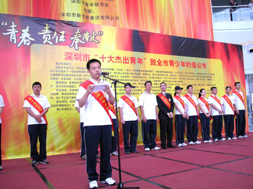 新当选的深圳市“十大杰出青年”与深圳青少年见面会,今天在少年宫水晶石大厅举行。