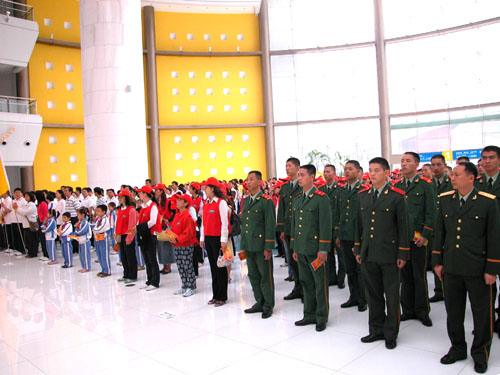 张文书记和“十杰”带领与会青少年在倡议书上签名