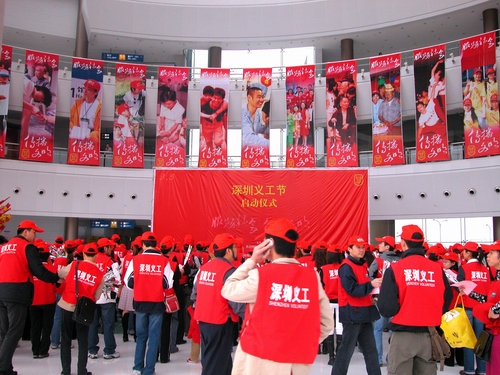 仪式上,深圳市优秀义工高正荣宣读了团市委和深圳特区报关于设立义工节的倡议书。随后,近千名义工代表进行了集体宣誓。他们通过誓言表示,将努力发扬深圳义工精神,做好义工服务,无愧深圳义工这一光荣而神圣的称号。