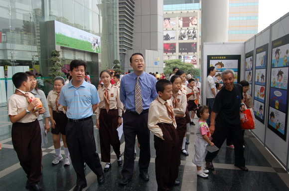 据介绍,本次主题宣教活动是面向全市青少年开展的公益性活动,将持续至12月底,包括万本读物《漫画荣耻》赠百校、两大主题图片巡回展览、优秀观后感征集评选活动等丰富多彩的内容,其中,由团市委、市少工委和市少年宫联合编印的荣辱观漫画读本《漫画荣耻》共2万册,将免费向全市100所学校赠送,长征历史图片和社会主义荣辱观主题图片巡回展览将送进校园、送到社区、送到青少年身边。现场的家长纷纷表示,这样的活动很有意义,可以让更多的孩子了解长征,结合学习社会主义荣辱观,树立正确的人生观。有些刚获知消息的市民都赶着回家领孩子前来参观。刚刚领了赠书的校方代表陈老师说,《漫画荣耻》读本用活泼的艺术形式将社会主义荣辱观融入孩子们的生活中,非常直观和容易理解,让他们懂得日常行为中的荣与耻,引导他们从小做起,从点滴做起,自觉践行社会主义荣辱观。在读书月期间举办这样的活动,显得特别有意义。