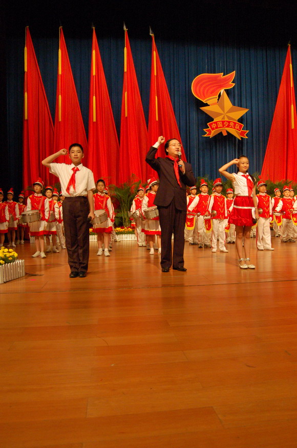 市委副书记白天为新入队的少先队员佩戴红领巾
