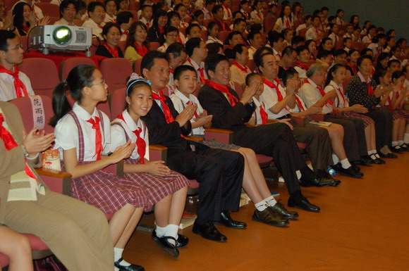 此次会议安排了别开生面的“重温少先队入队仪式”,由市领导和老同志与新老少先队员同台参加,并为新入队的少先队小朋友佩带红领巾,场面热烈庄重,十分感人。