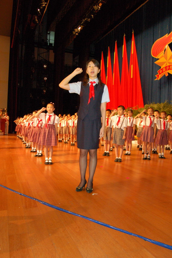 团市委书记张文为新入队的少先队员佩戴红领巾