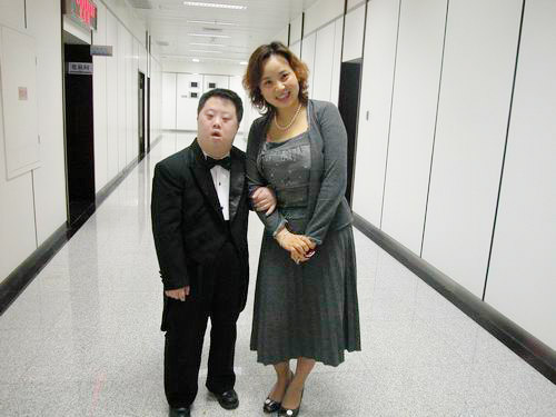 交响管乐团负责老师与舟舟合影