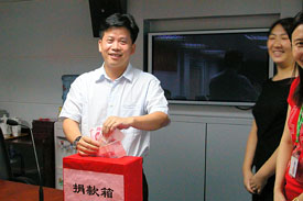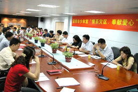 灾后重建工作也深深地牵动着深圳市少年宫人的心,少年宫人立即行动了起来,用爱心表达对灾区的关心。7月5日上午11时,少年宫员工在悬挂着“情系灾区、奉献爱心”大红横幅的六楼会议室举行了捐款活动。少年宫全体员工纷纷献上爱心,仅仅几分钟时间便筹得赈灾款人民币8090元,大家心中默默祝福灾区群众早日战胜困难,重建家园。捐款活动体现了少年宫人对灾区群众的关爱、关切之情以及一方有难、八方支援的人道情怀。