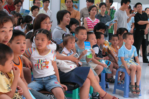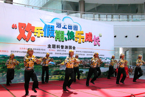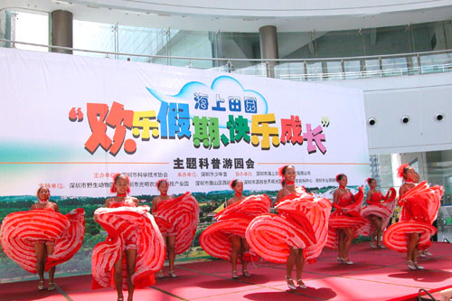 今天是暑假的第一个周末,少年宫水晶大厅里热闹非凡,首届“欢乐假期、快乐成长”——主题科普游园活动在这里开幕。此次活动是深圳市科学技术协会和深圳市少年宫及海上田园旅游发展有限公司,为丰富活跃深圳市近80万青少年儿童的暑期学习生活,大力推行“积极进取、健康活泼、乐观向上”的社会新风尚,同时展示特区成立25年来,科普教育基地发展建设的成就而举办的。活动将从今日起持续至23日。