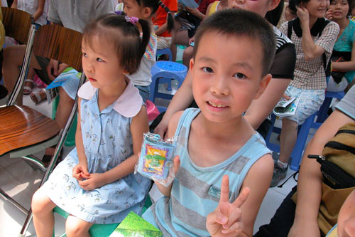 快来看看,我是第一个领到奖品的小朋友!