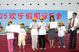 结合“2005欢乐假期音乐会”少年宫举行了闭营仪式:佘可等三位营员获得了“最佳作品奖”荣誉证书,徐晓晖等三位营员获得了“最具潜力奖” 荣誉称号,谭向悦等三位营员获得了“最佳动画制作奖” 荣誉称号,杨嘉华等六位营员获得了“优秀营员”荣誉称号。在悠扬的古筝乐曲伴奏下,两位营员还现场作画,将民乐演奏的演员绘得惟妙惟肖,受到了在场的学生及家长好评,赢得了在场参观少年宫的“深港学生携手夏令营”400余师生的热烈掌声和喝彩。