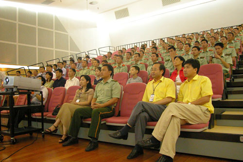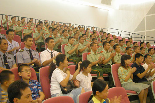 今日下午2:30,在深圳市少年宫三楼音乐厅,举行了以“大鹏湾畔抗日烽火”为主题的,纪念抗日战争胜利60周年深圳地区抗战史讲座,武警七支队部分官兵与黄埔雅苑社区党员群众近200人参加了今天下午的讲座。本次讲座由深圳市少年宫、深圳市史志办公室和中国电信深圳深圳公司共同主办,由深圳市史志办公室毛剑峰副处长、副教授主讲。