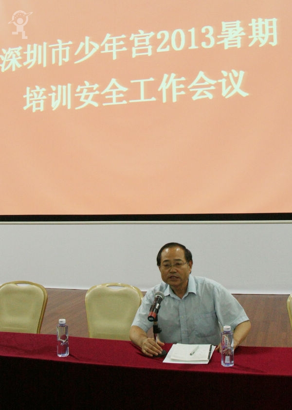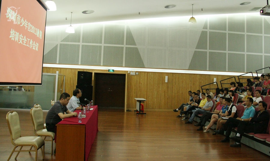 2013年7月12日(周五)下午,在少年宫三楼音乐厅召开了深圳市少年宫2013年度暑期培训安全工作会议,少年宫各机构全体教职员工参加会议。会议由少年宫督导主任徐士斌主持。首先,少年宫安委会办公室主任黎辉通报了少年宫培训安全工作有关情况,提出了今年以来屡次安全检查中发现的安全漏洞和防范要点。随后,少年宫副主任王斌就2013暑假安全工作进行了具体部署和安排。