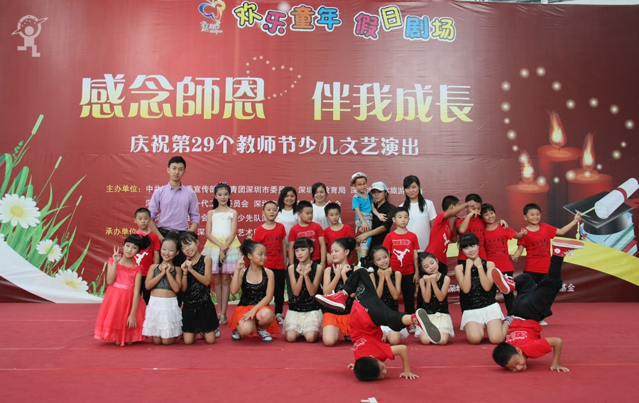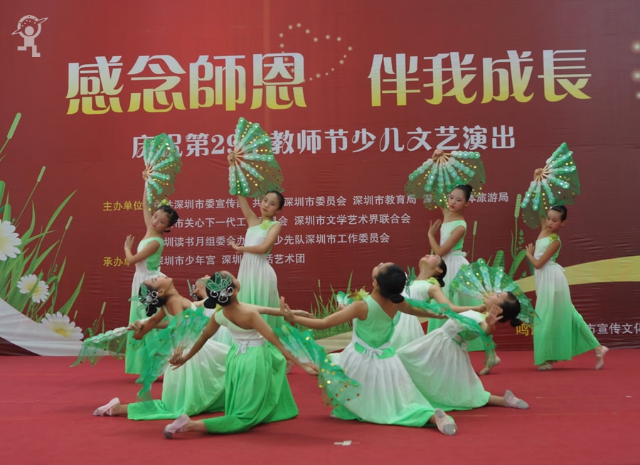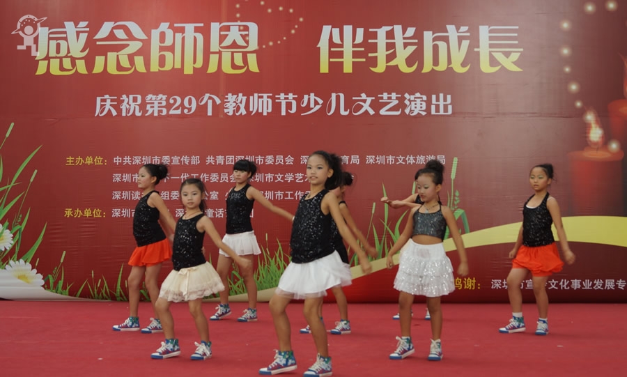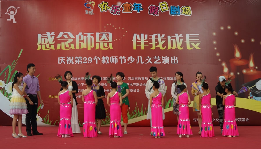 金秋九月,硕果累累,又到了一年一度的教师节。为了让学生进一步认识教师工作的艰辛和崇高,抒发学生对老师的感激之情,9月8日,由市文明办、团市委、市教育局、文体旅游局等单位联合主办,市少年宫、深圳市童话艺术团承办的“欢乐童年”假日剧场——“感念师恩 伴我成长”庆祝教师节文艺演出在市少年宫进行了两场精彩的演出,现场近千名家长、学生和老师参与观看。