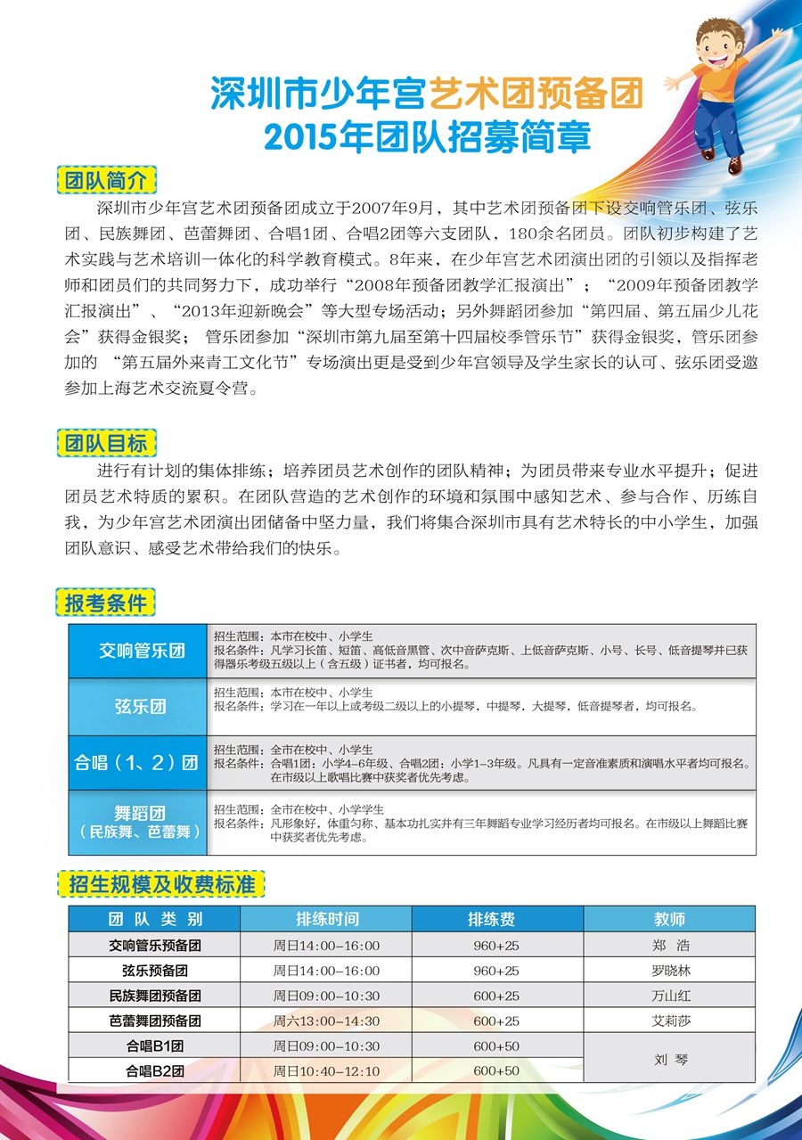 深圳市少年宫2015年艺术团、领袖团考核安排