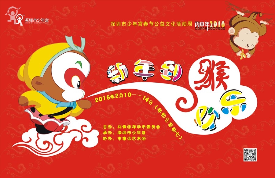 为丰富广大青少年儿童春节假期的文化娱乐生活,深圳市少年宫于猴年新春举办“春节公益文化活动周”,让小朋友们在少年宫度过一个欢乐而富有意义的春节。