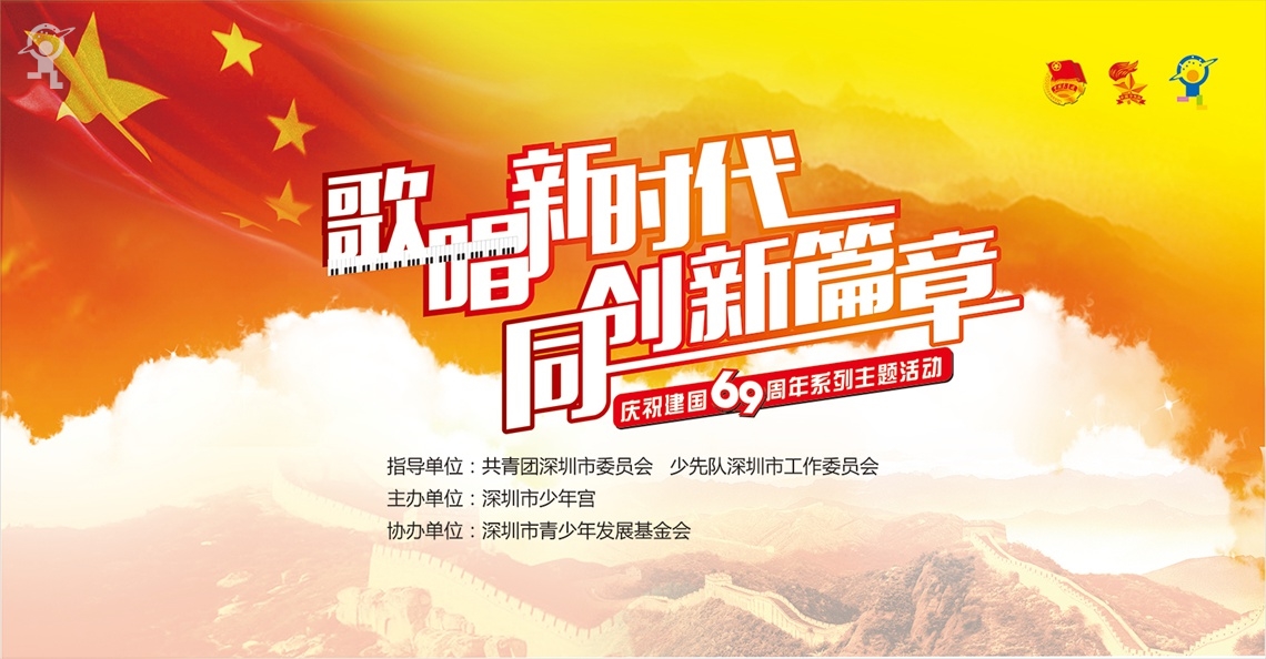 今年国庆是中华人民共和国成立69周年。为庆祝节日,在共青团深圳市委员会、少先队深圳市工作委员会指导下,深圳市少年宫将协同深圳市青少年发展基金会共同举办 “歌唱新时代、同创新篇章”庆祝建国69周年系列主题活动。活动以歌唱、展览、讲座等形式开展,邀请家长和小朋友们参与,举国同庆祖国生日。