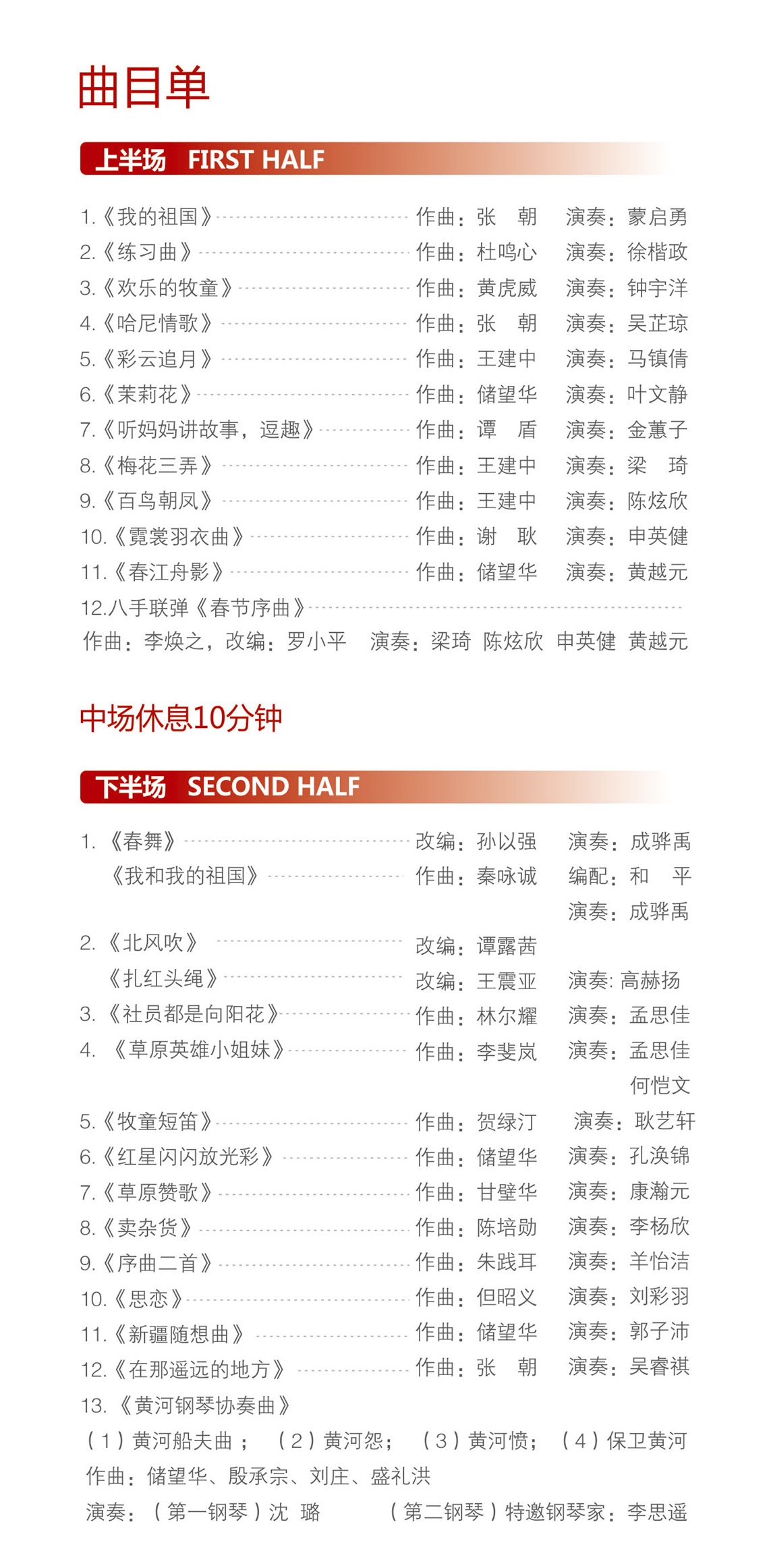 演出内容:“中华情·赤子心——献礼中华人民共和国成立七十周年”青年钢琴家沈璐师生中国作品专场音乐会