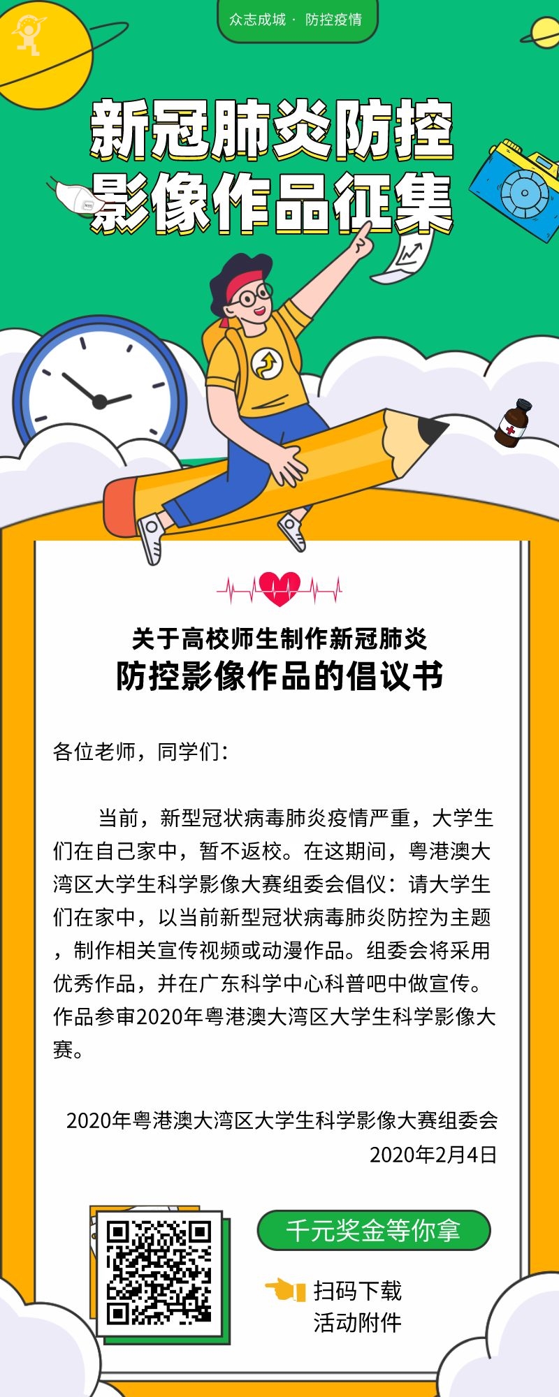 ·请在邮件主题或文章标题前注明“科学防疫抗疫使命有你有我”征文活动。来稿需注明姓名、年龄、单位或学校、联系方式(含联系人、手机、邮箱)。