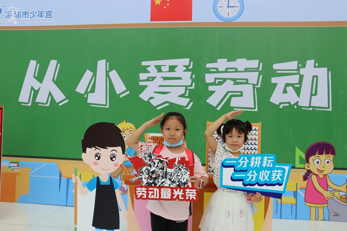 从小爱劳动展板合影
