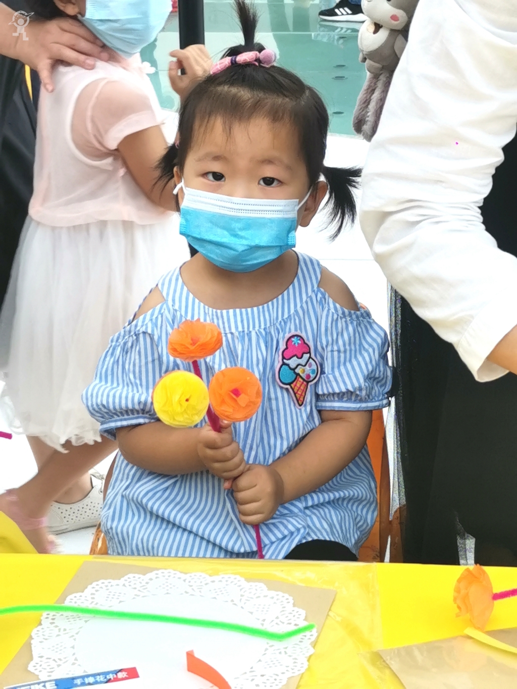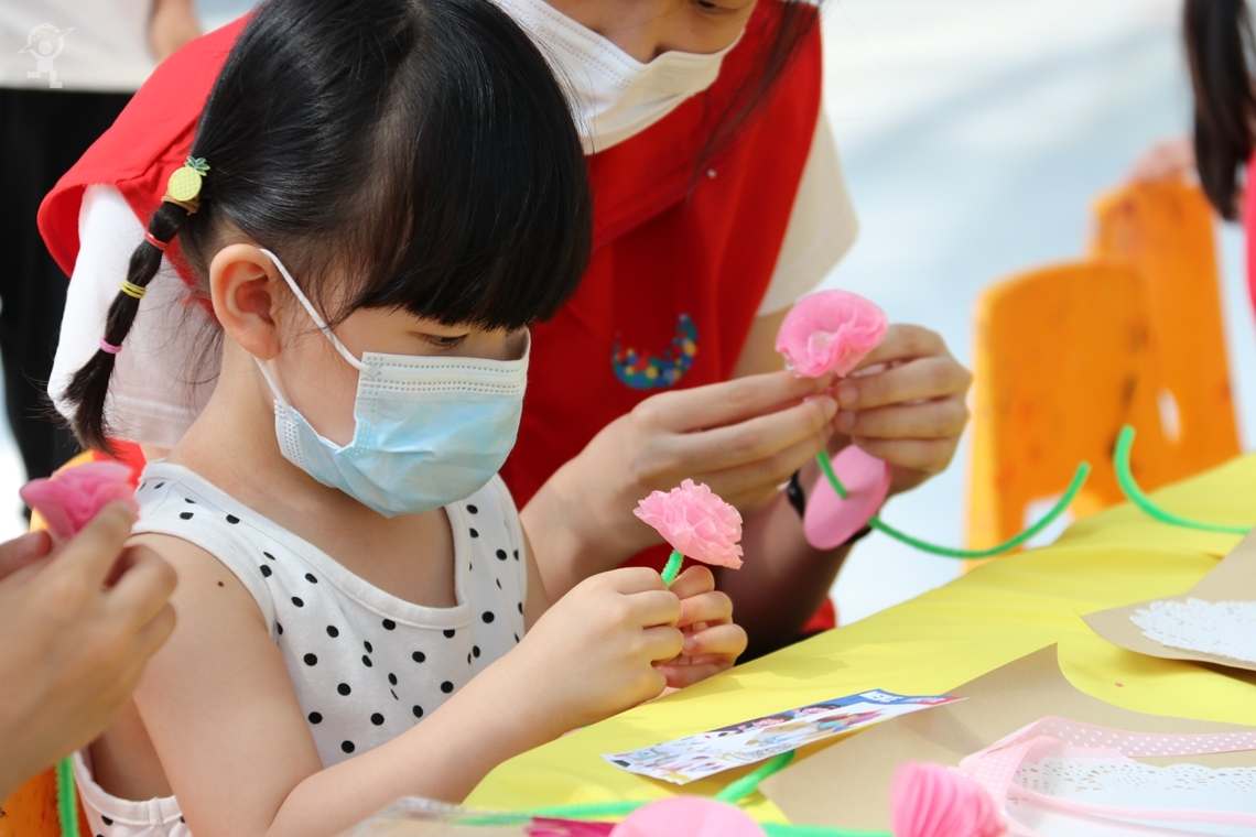 同时,活动现场孩子还可以向市青少年发展基金会“帮困助弱”项目捐赠,通过爱心行为参与手工制作活动,用自己的双手制作一束美丽的康乃馨,献给身边最美的劳动者,从小树立劳动光荣的观念。