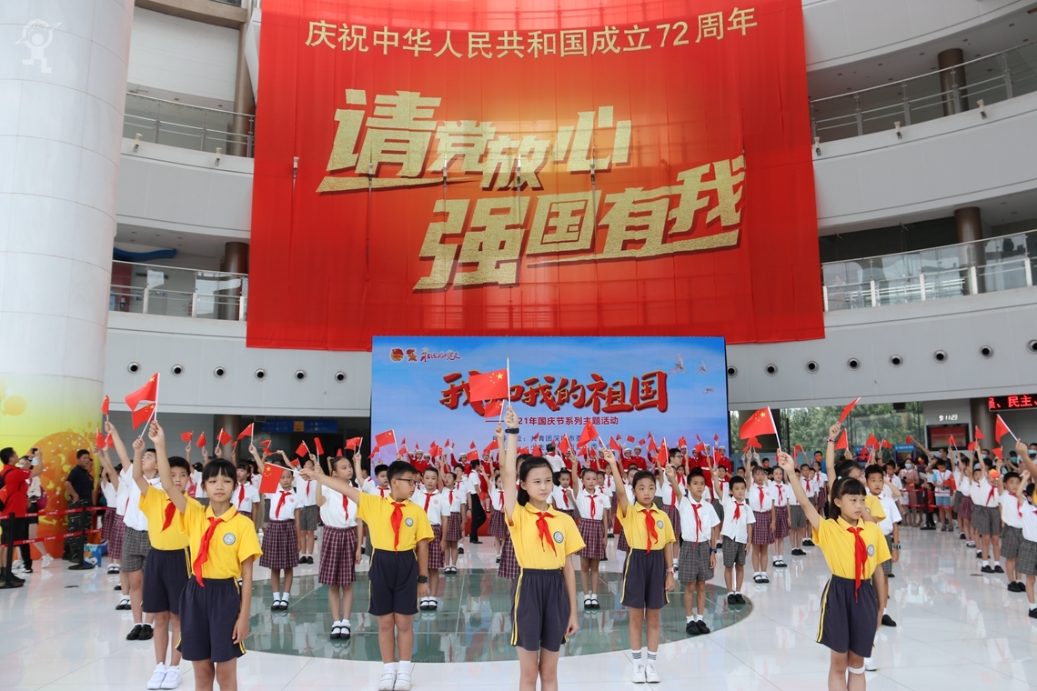 国庆佳节的少年宫,洋溢着歌声与欢笑,浮现着回忆与憧憬。在这里,爱国情感已融入那最美的中国红,在这里,爱国情感已刻进红领巾那 “请党放心,强国有我”的铮铮誓言中。