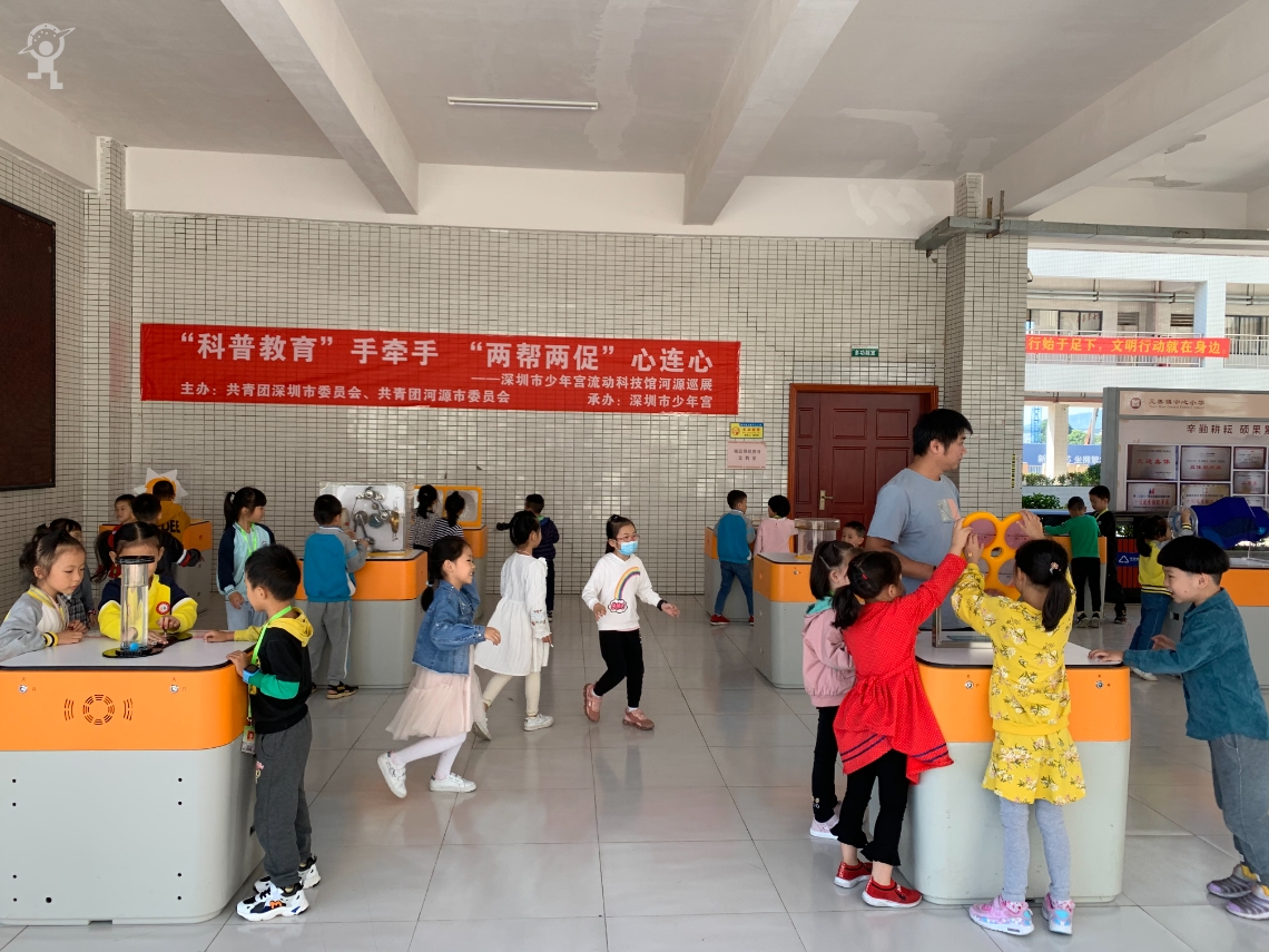 ▲深圳市少年宫流动科技馆在河源元善中心小学进行巡展。