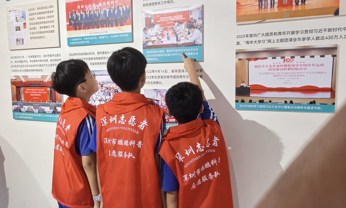 少年儿童们走进深圳市义工天地展馆