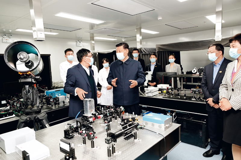 2021年4月19日,在清华大学建校110周年校庆日即将来临之际,中共中央总书记、国家主席、中央军委主席习近平来到清华大学考察。这是习近平在清华大学成像与智能技术实验室同师生们亲切交谈。 新华社记者 黄敬文/摄